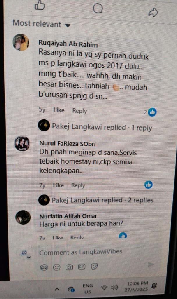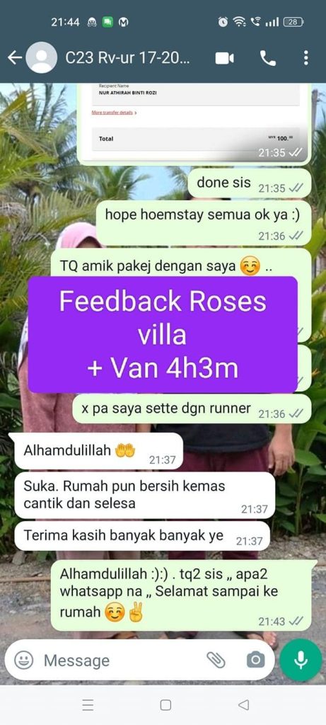 “Sangat selesa! Kami datang 40 orang, dan semua dapat duduk selesa. Lokasi dekat sangat dengan Cenang. Recommended!” – Puan Hanim, Johor